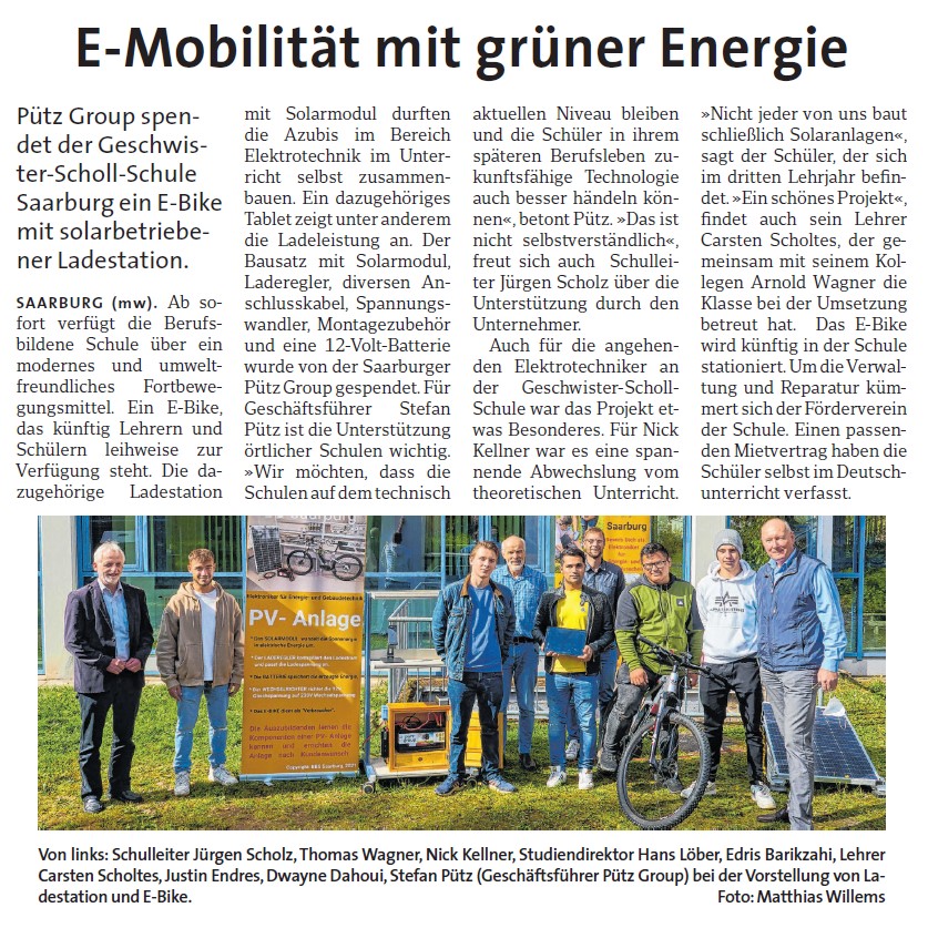 Am 08.10.2021 berichtete der Konz-Saarburger Wochenspiegel über unsere Spende an die BBS Saarburg.